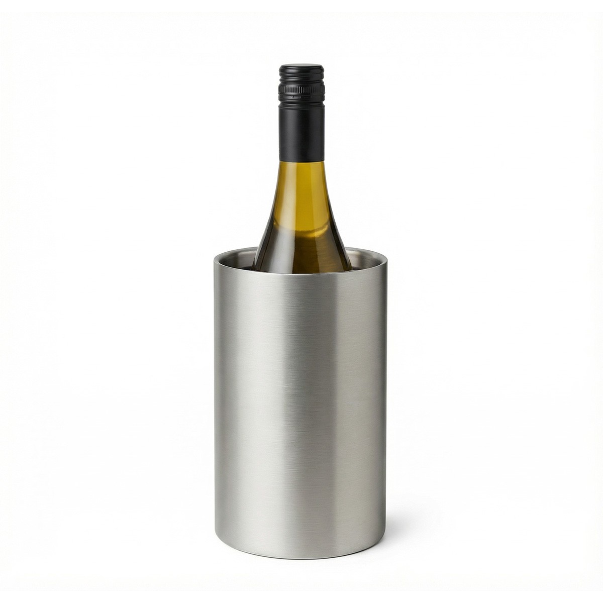 Este enfriador de vino de acero inoxidable cepillado para una botella mantiene el vino o el champán a la temperatura ideal. Diseñado para una sola botella, es perfecto para cenas íntimas, noches en casa o entornos profesionales en hostelería.
