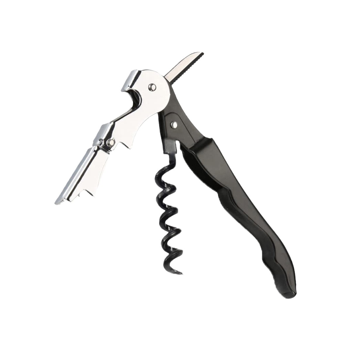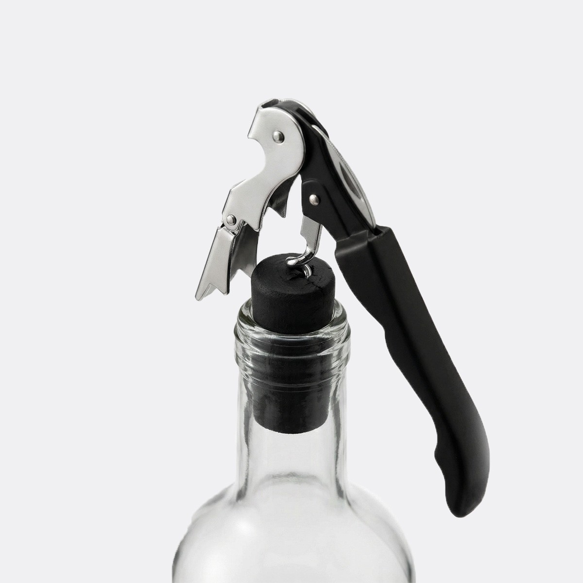 El sacacorchos permite extraer el corcho en dos pasos. Este método eficiente ahorra tiempo y facilita el proceso de descorche. El diseño ergonómico ofrece un agarre cómodo y gran funcionalidad. Además, el sacacorchos incluye cortacápsulas y espiral con recubrimiento de teflón.